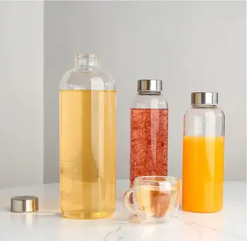 • Hot Sell Glass Water Cup Clear High Borosilicate Glass Water Bottle 300ml 500ml Custom Glass Bottle Water Bottle With Lid