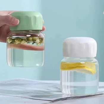 • Portable Eco-Friendly Mini Tumbler Cute Leak-Proof Glass Cup with Lid for Tea Drinking and Water Bottle
