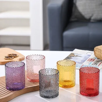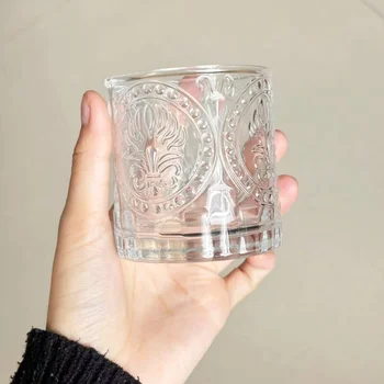 • Hot Selling300mlGlass Ins Embossed Water Cup Bar Beer Mug Coffee Juice Cold Drink Cup Relief Woven Molding Transparent Glass