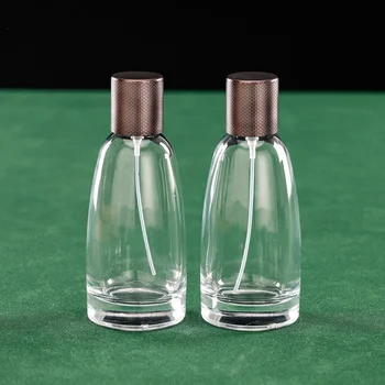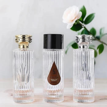 • Luxury Clear Empty 30ml 50ml 100ml Crystal Fragrance Glass Perfume Bottle with Gold Silver Engraved Lid