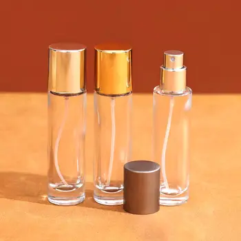 • Hot Selling Clear 30ml 50ml 100ml Cylinder Unique Empty Glass Cosmetics Perfume Spray Glass Bottle with Lid