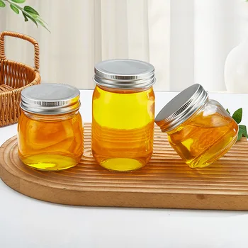 • Food Grade Transparent Round Fruit Canned Glass Bottle Chili Sauce High Quality Honey Bottle Jam Jar with Tinplate Lid