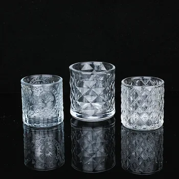 • Decorative Pattern Glass Candle Vessels Empty Candle Container Jars Aromatherapy Candle Glass Jar for Home Decoration