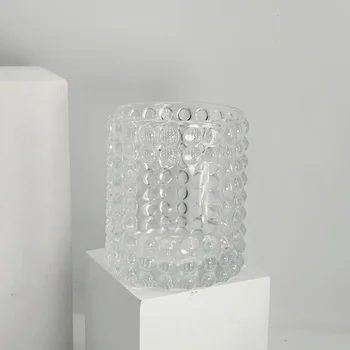 • Wholesale Modern Cylinder Transparent Glass Candle Jar with Embossed Logo Home Decoration Spray Printing