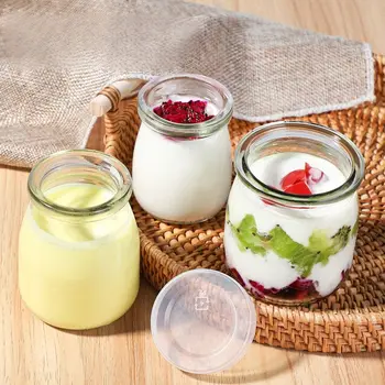 • Food Grade Empty 100ml 150ml 200ml Clear Glass Fruit Jam Yogurt Jelly Pudding Jar with Plastic Lid