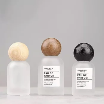 30ml 50ml 100ml Wholesale Matte White Glass Perfume Bottle with Wood Ball Lid