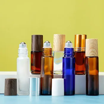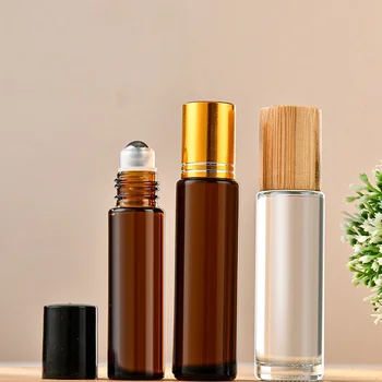 • 5ml 10ml Bamboo Roll on Bottles Perfume Essential Oil Roller Bottles Amber Refillable Steel Ball Glass Bottle With Bamboo Cap