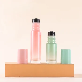 • 5 ml 10 ml in Stock Wholesale Essential Oil Perfume Roller Gradient Macaron Colored Wood Grain Lid Glass Bottle