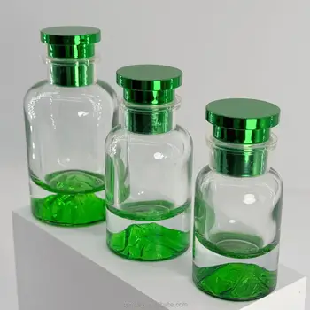 • 30ml 50ml 100ml New Design Thick Mountain Bottom Unique Luxury Green Perfume Glass Spray Bottle with Lids Custom Logo