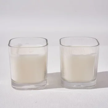 • 11oz 6oz New square Transparent Glass Candle Jar with Color for Home Decoration Aromatherapy Candle Cup