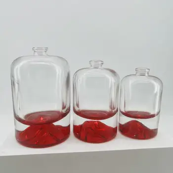 • Unique Luxury Custom 30ml50ml100ml Red Color Volcano Bottom Shape Glass Perfume Bottle with Lid