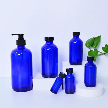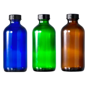 • High Quality Custom Amber 240ml 500ml Blue Green boston Cosmetic Essential Oil Glass Bottle with Black Cap