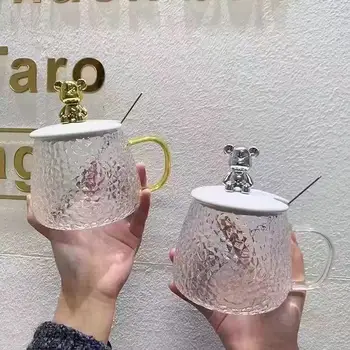 • New Promotional Gift Bear Lid Mug Hand Gift Glass Water Bottle Coffee Cup Mug Coffee Household Tea Juice Cup Mugs With Spoon