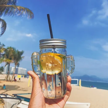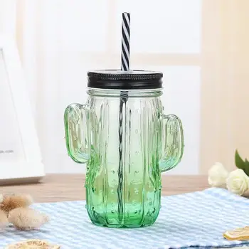 • Customizable Color clear Mason Glass Cup Beer Mug 400ml Cactus Shaped Drinking Glasses with Handle