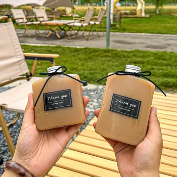 • In Stock 50ml 100ml 200ml Bevel Shoulder Flat Cold Brew Coffee Bottle Custom Color Black Flat Glass Drinking Bottles