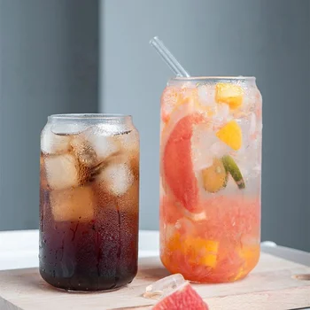 • Wholesale Custom 12oz 16oz Can Shaped Transparent Sublimation Coffee Mug Beer Glass Cup With Bamboo Lid and Glass Straw