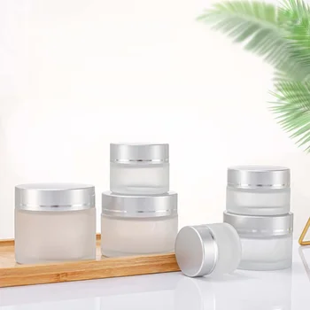• Portable Mini 5g 10g 15g 20g 30g 50g 60g 100g Frosted Matte Glass Cosmetics Face Eye Cream Jar with Screw Silver Cap