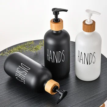 • 500ml Soap Pump Black and White Glass Bottle Soap Dispenser Bottle Liquid Soap Bottle With Bamboo Holder Accepct Customized Sign