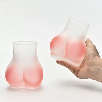 Nueva llegada tendencia 450mL 16oz en forma de melocotón glúteos taza de cristal lindo diseño divertido para café frío bebidas congeladas cerveza o vino