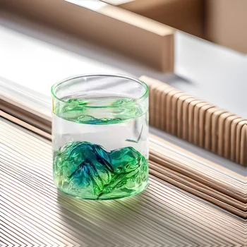 • Wholesale High Borosilicate Japanese Style Fuji Mountain Glass Whiskey Cups Customizable Logo Classic Colored Mountain View