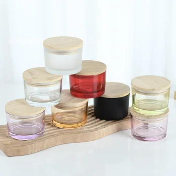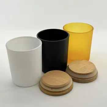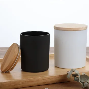 • Hot Selling Cylinder Custom Color Black Red Frosted Glass Candle Vessel Candle Jar with Bamboo Wooden Lid