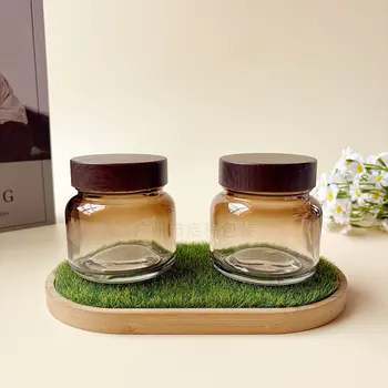 • Hot Sales Wood Bamboo Lids Set 4 oz 120 ml Spice Glass Jar Pantry Organizer for Seasoning Pepper Food Storage Glass Jar
