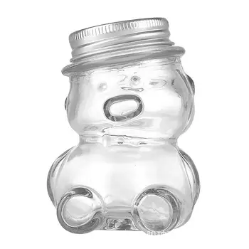 • Creative Cute Bear Shape 50ml 80ml 160ml 300ml Clear Glass Water Tea Coffee Wine Milk Juice Yogurt Bottle with Screw Lid