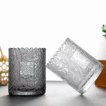 • Hot Selling Luxury Irregular 200ml Twist Clear Amber Grey Glass Candle Holder Crystal Candle Jar for Candle Making
