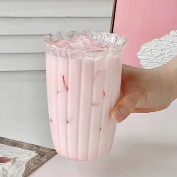• Wholesale High Borosilicate Vertical Pattern Clear Cold Brew Latte Milk Lace Glass Drinkware