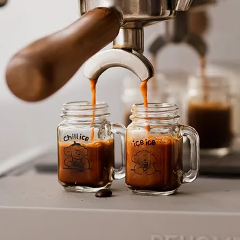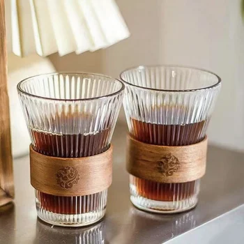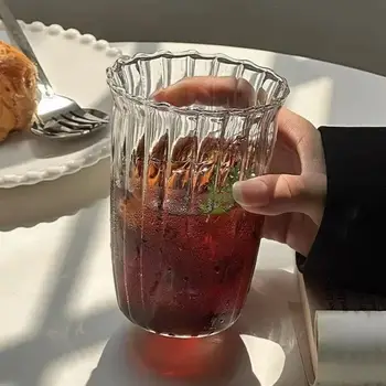 • Simple Striped Glass Drinkware American Latte Ice Coffee Juice Cups for Cold Drinks Household Milk and Water Cups