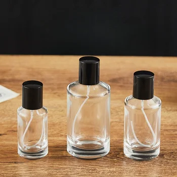 • High Quality 30ml 50ml 100ml Cylinder Clear Cosmetic Spray Atomizer Sloping Shoulders Glass Perfume Bottle with Lid