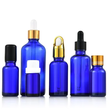 • Hot Selling Blue 5ml 10ml 15ml 20ml 30ml 50ml 100ml Glass Essential Oil Dropper Bottle for Skin Care Serum Packing